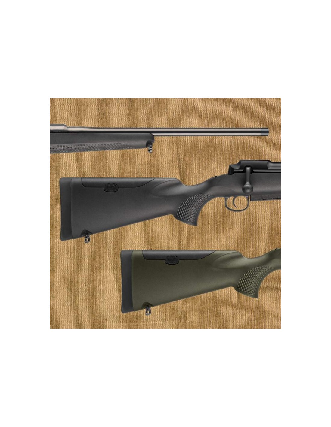 | Culata de rifle: | Culata de polímero robusta (opcionalmente negra o verde) |