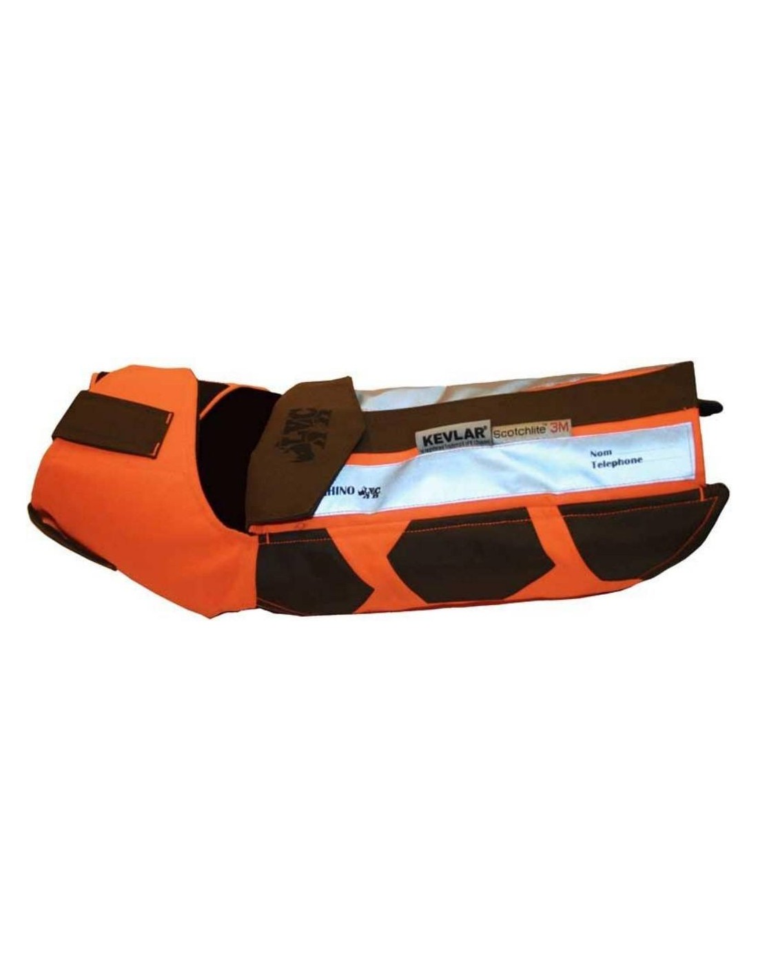 El chaleco fluorescente de seguridad para perros Rhino es ultra resistente.  Protege a su perro de las espinas negras, zarzas, colmillos de jabalí y todo tipo de obstáculos durante un acecho.