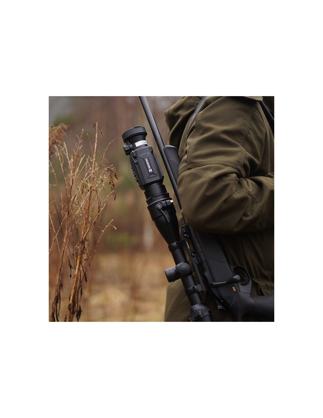- Este modelo de Clip-On se suministra preparado para adaptarle la anilla y acoplarlo a un visor diurno o para cambiarle la pieza que se adapta a la anilla por un ocular con goma para usarlo solo de monocular térmico. En ambos casos hay que comprar la pieza a parte (Ocular o Anilla ARM52) para darle el uso deseado.