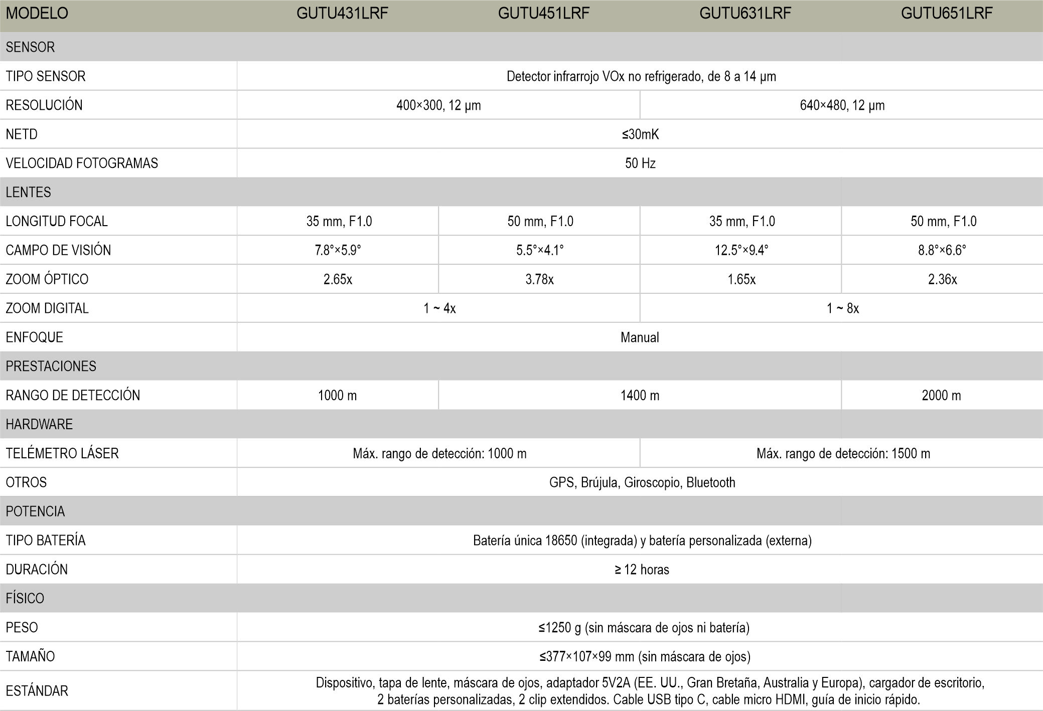 Especificaciones técnicas TU GEN 2 LRF Series: